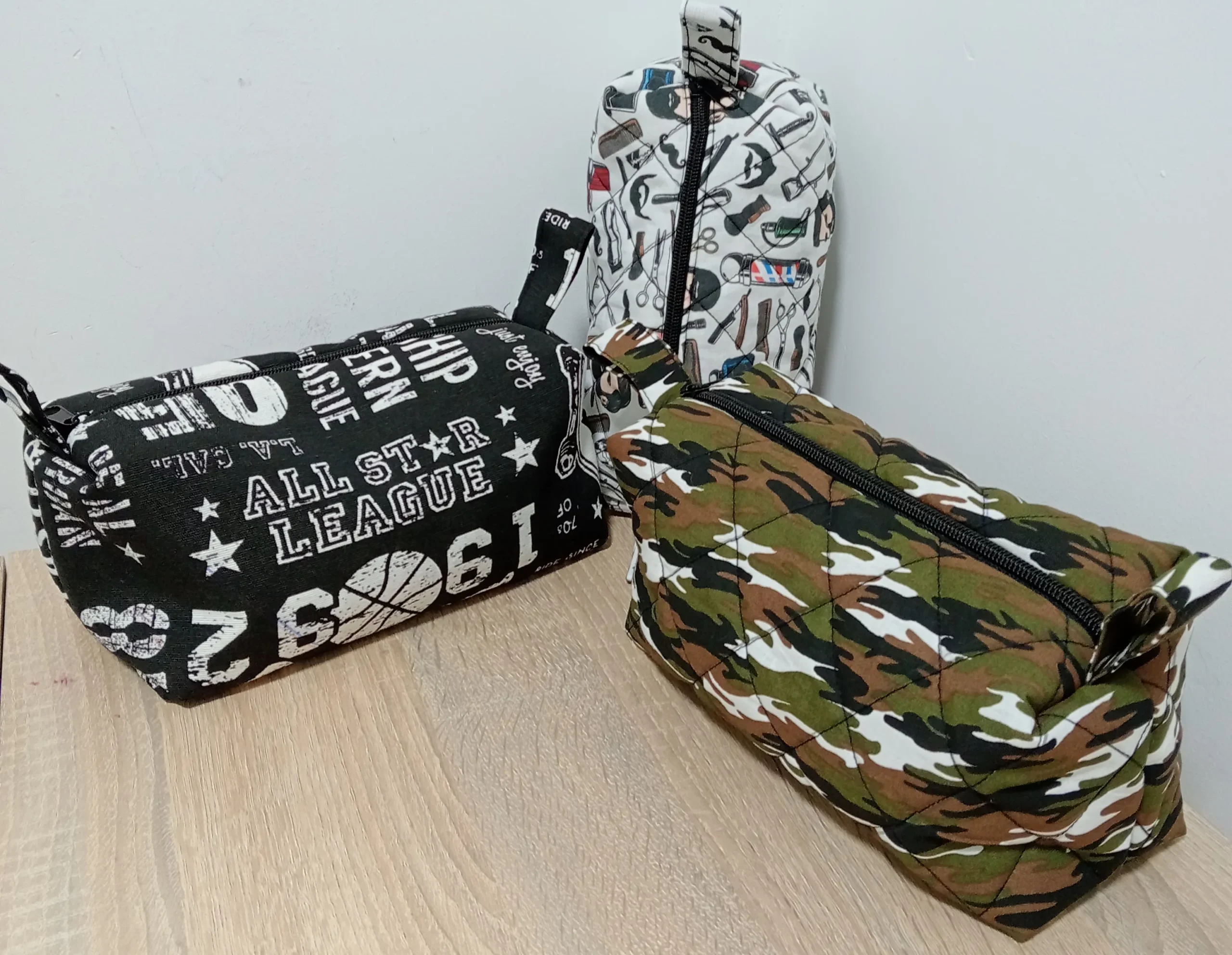 Confeccionado a mano en el taller de Dobra Arte Textil, su formato rectangular permite aprovechar bien el espacio y guardar cómodamente gel, champú, desodorante, máquina de afeitar y otros imprescindibles. Es perfecto tanto para tenerlo en el baño como para llevarlo en la maleta.